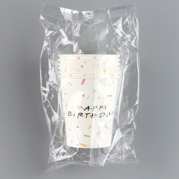 Стакан одноразовый бумажный «Happy birthday», набор 6 шт., 250 мл