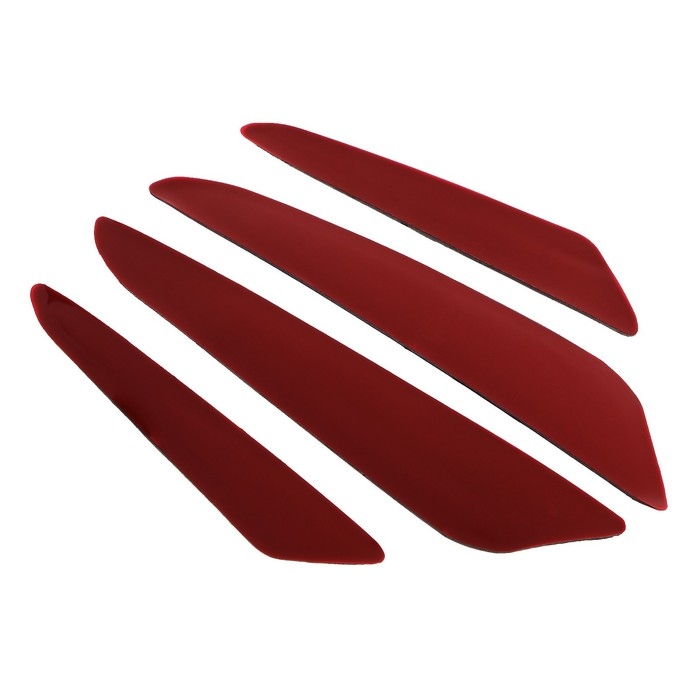 Предназначены для защиты двери от удара при открывании. Наклеиваются на кромку двери автомобиля за счет двустороннего скотча с оборотной стороны. Накладки сделаны из пвх и имеют выпуклую 3D форму. На лицевой стороне расположен рисунок имитирующий карбон.