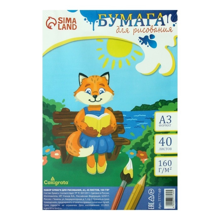 Формат бумаги А3, 40 листов в упаковке (термоусадочная пленка) и яркий вкладыш внутри. Качественная бумага повышенной плотности позволит творить практически любыми принадлежностями для рисования.