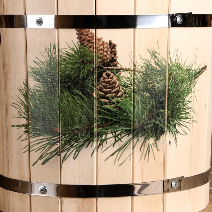 Запарник-ведро из липы, 13 л, пластиковая вставка, нержавеющий обод, "Еловая ветка"