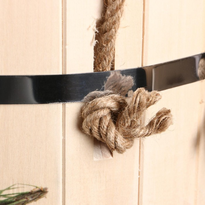 Запарник из липы, 12 л, нержавеющая вставка, нержавеющий обод, веревки, "Еловая ветка"