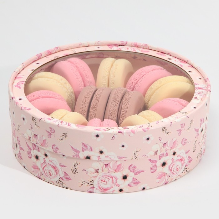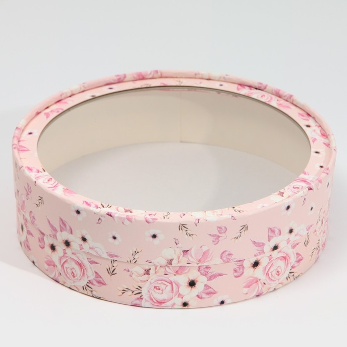 Коробка для макарун, кондитерская упаковка тубус с окном, «Цветы» 20 х 20 х 5 см