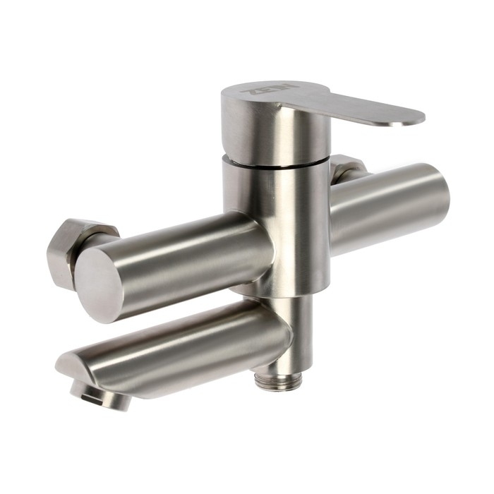 Смеситель для ванны ZEIN ZS5, короткий излив, с душевым набором, нержавеющая сталь, сатин