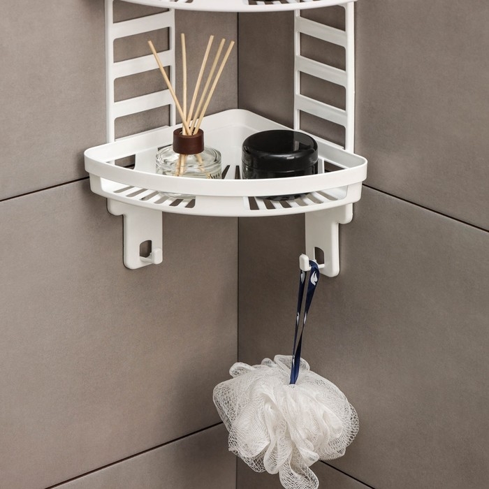 Полка угловая двухъярусная Доляна, 20×20×33 см, цвет белый