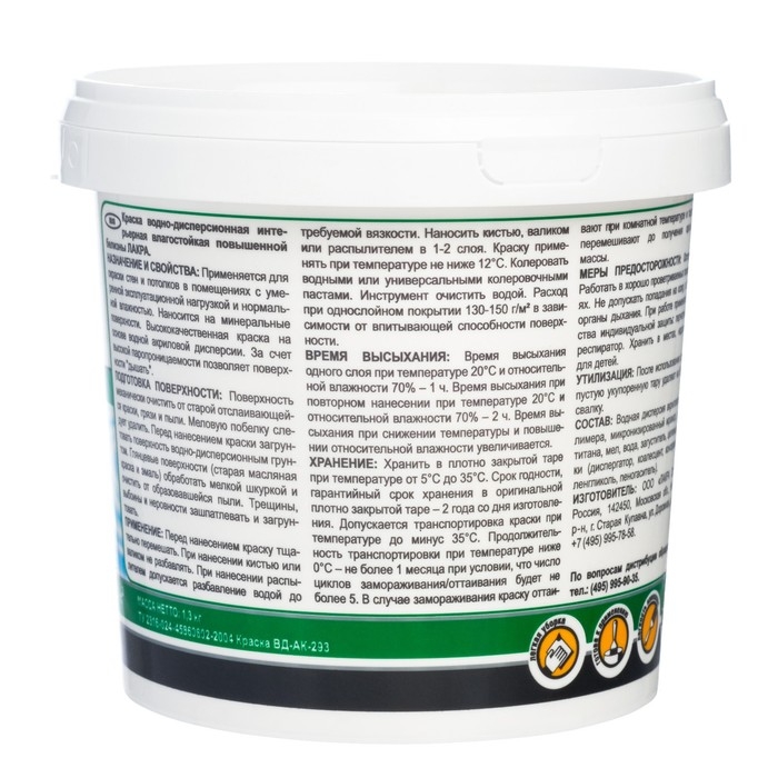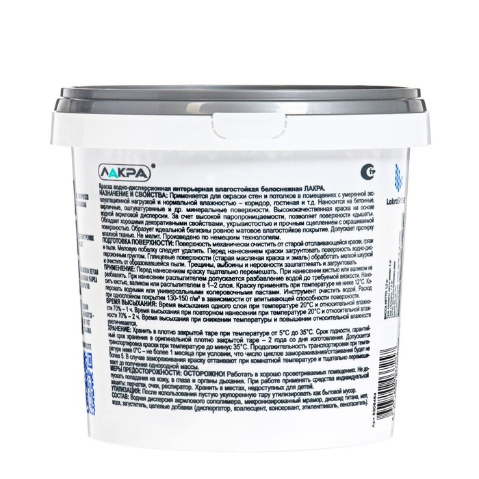Краска водно-дисперсионная ЛАКРА инт. влагостойкая повышенной белизны 1,3кг