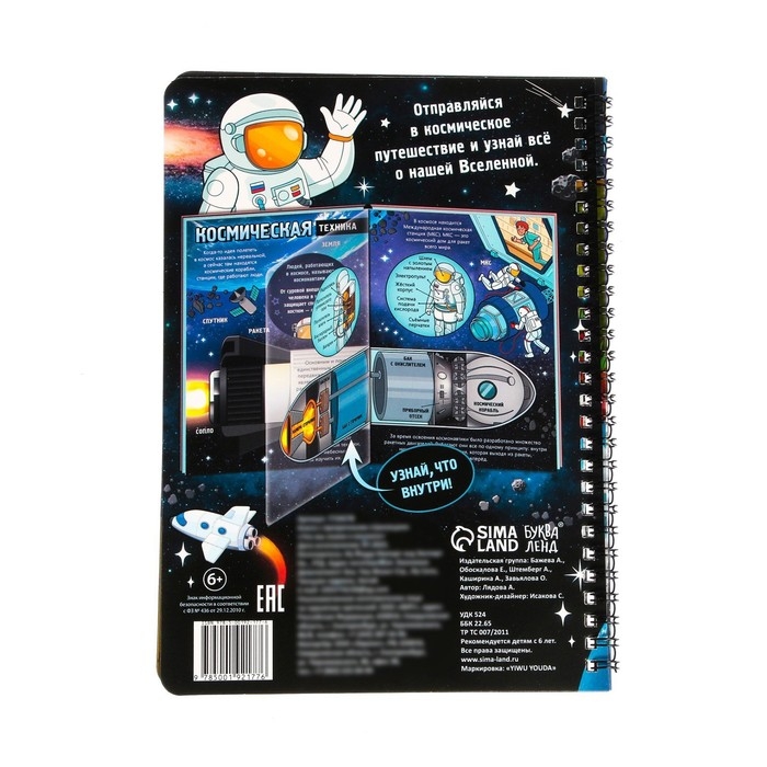 - На красочных страницах вы найдёте много интересных фактов о нашей планете и Солнечной системе, а также о величайших технических изобретениях, которые сделали возможным освоение космического пространства.