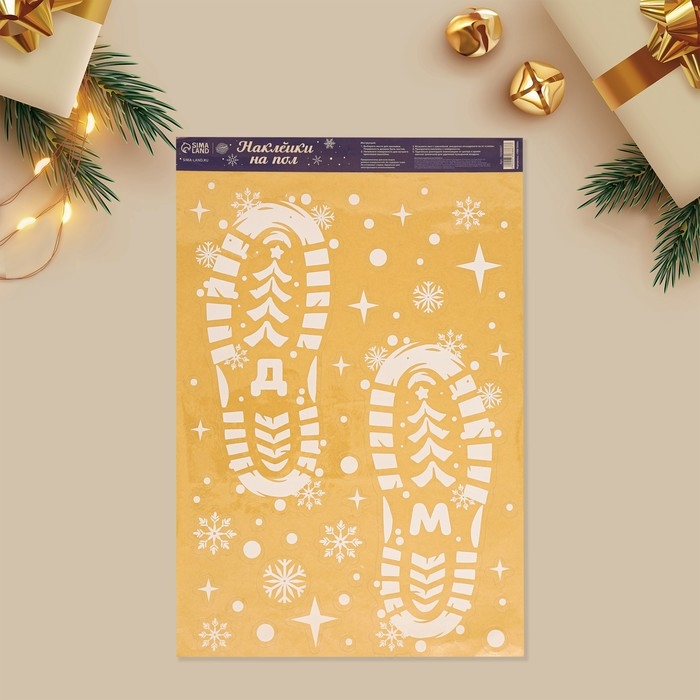Наклейки на пол виниловые новогодние «Следы Деда Мороза», на Новый год, цвет белый