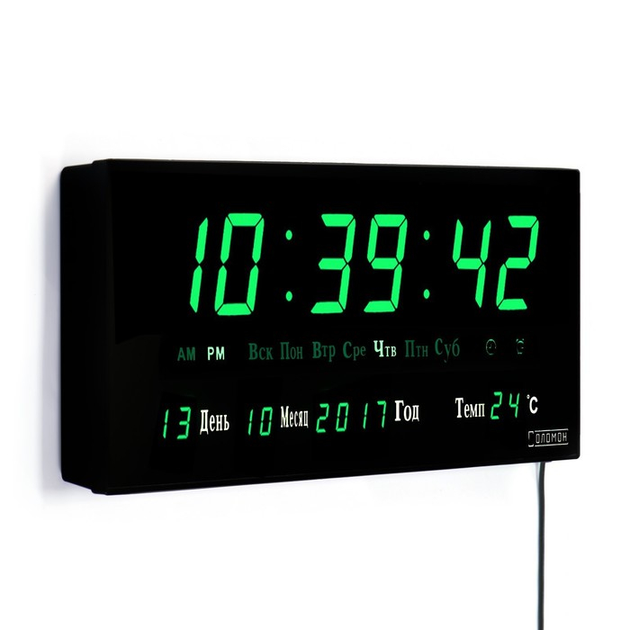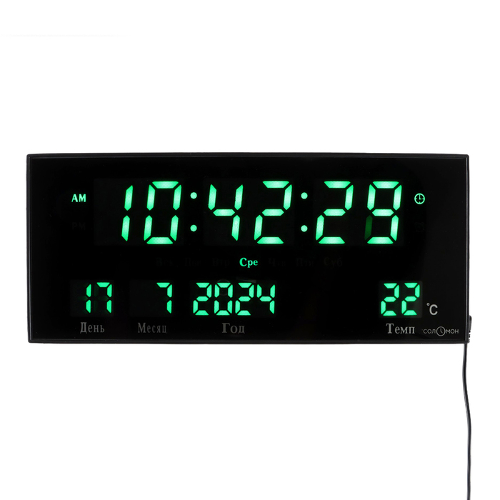 Часы электронные настенные, настольные "Соломон", с будильником, 15 х 36 см, зеленые цифры