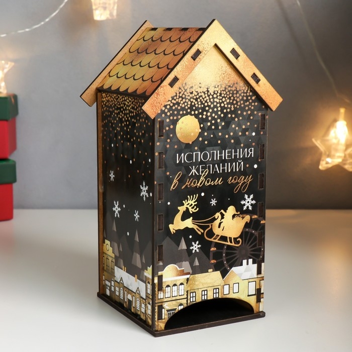 Новогодний чайный домик "Дома. Черное золото" 20х10,5х9,5 см