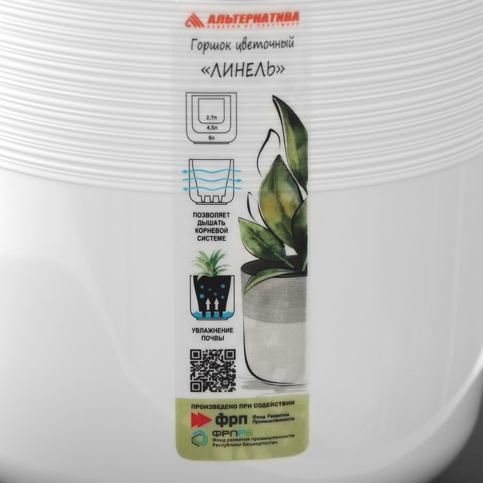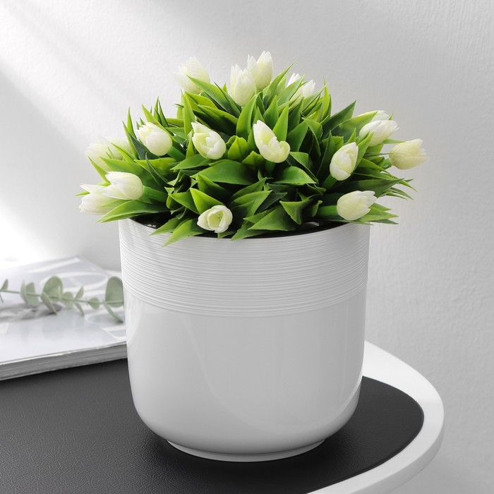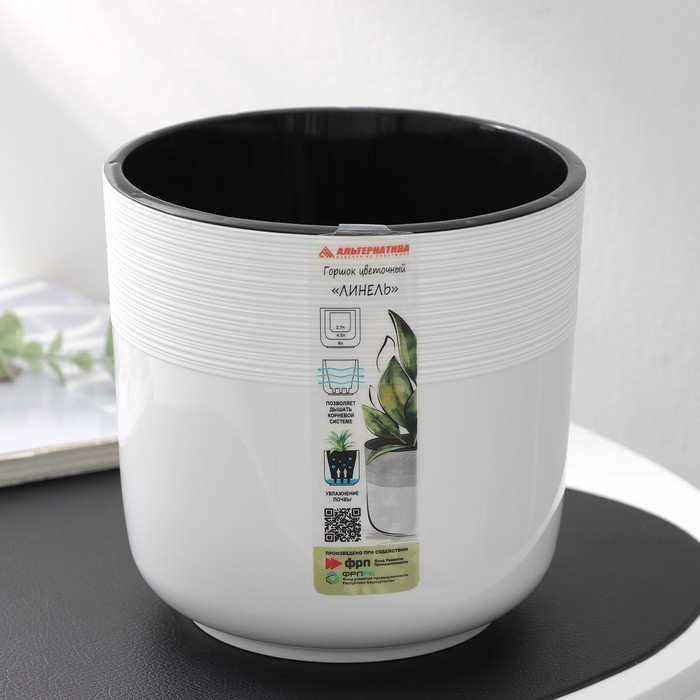 Кашпо для цветов со вставкой «Линель», 2,7 л, d=16 см, h=16 см, пластик, цвет белый