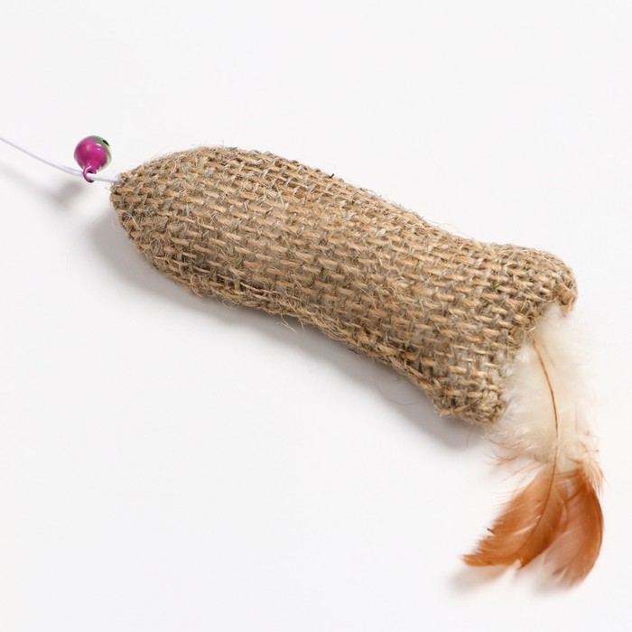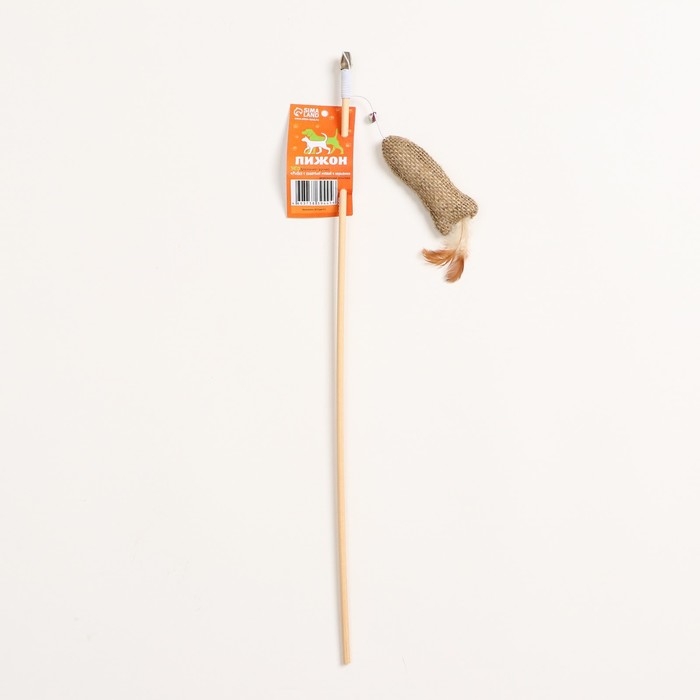 Дразнилка - удочка из эко-материалов "Рыбка с кошачьей мятой и перьями" на деревянной палочкой 91570