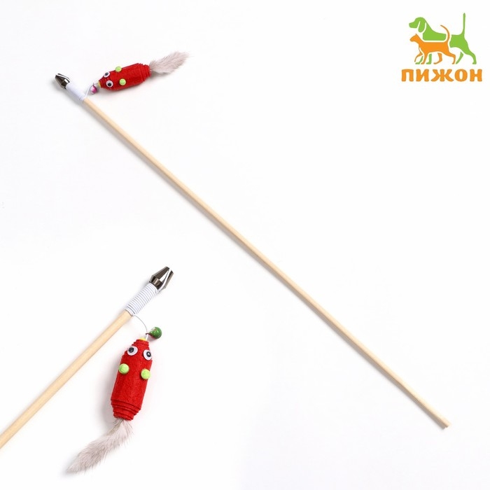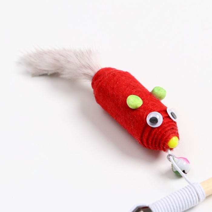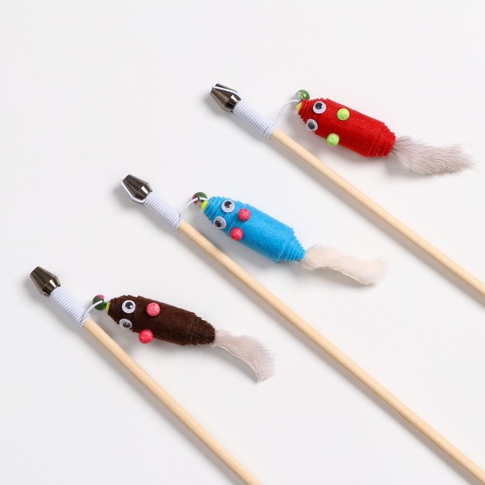 Дразнилка - удочка "Мышь из фетра с норковым хвостиком" на деревянной палочке, микс цветов