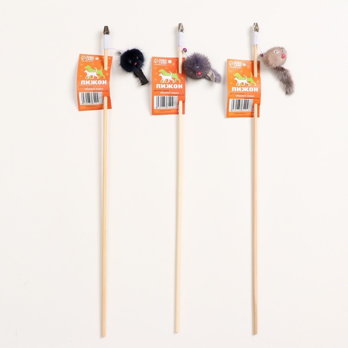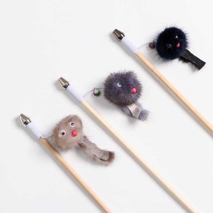 Дразнилка-удочка с серой мышью, палочка микс цветов