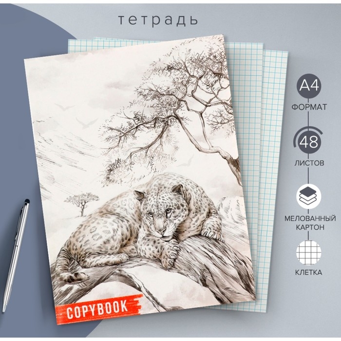 Тетрадь А4, 48 листов в клетку "Леопард" обложка мелованный картон, блок офсет