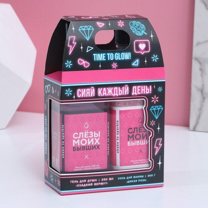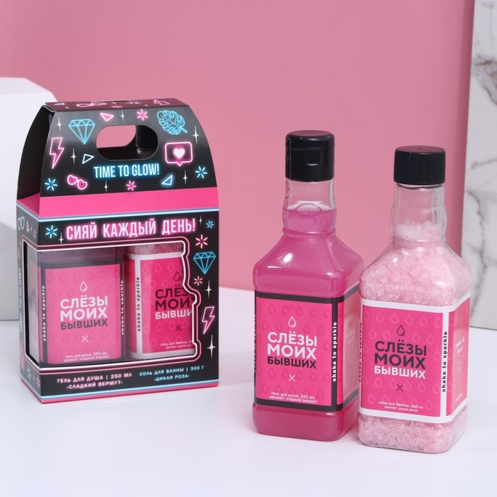 Подарочный набор косметики «Сияй!», гель для душа во флаконе виски 250 мл и соль для ванны во флаконе виски 300 г, Новый Год