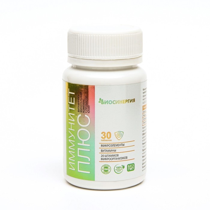 Витаминно-минеральный комплекс "Биосинергия", "Иммунитет+", 12 витаминов и 6 минералов+ симбиотическая закваска, 30 таблеток