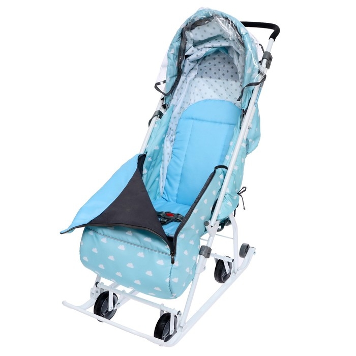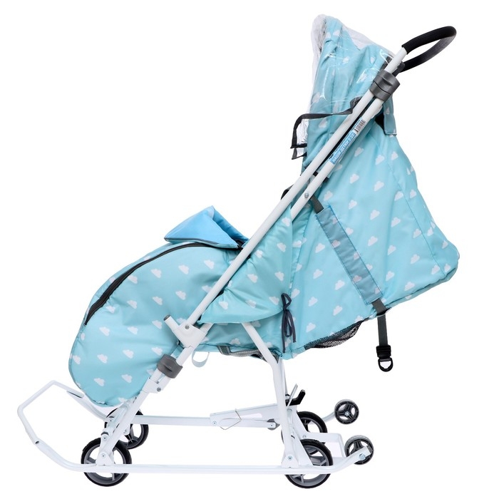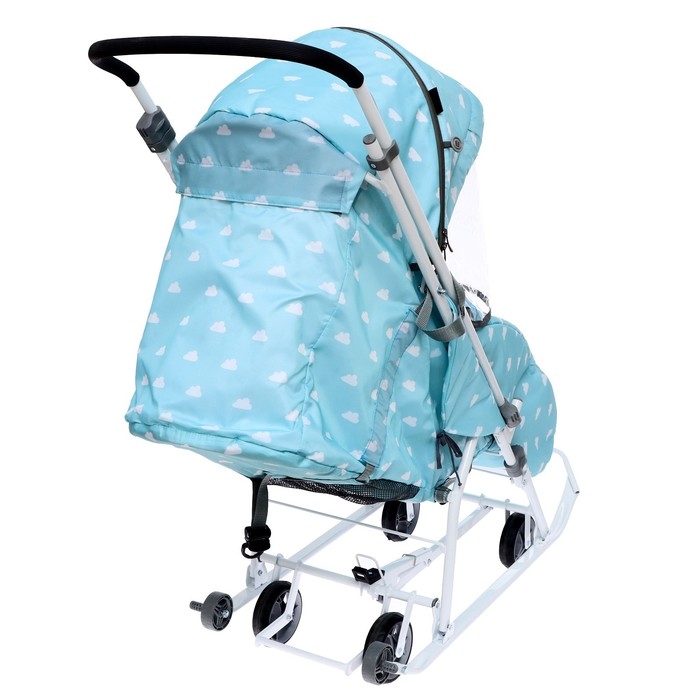Санки-коляска «Наши детки 3-1К», принт с облачками, цвет голубой
