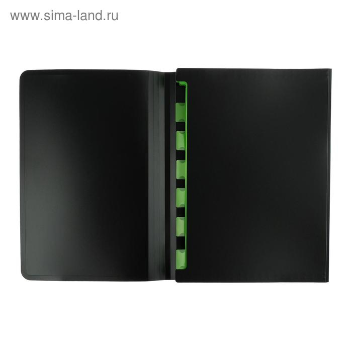 Папка-картотека с 6 отделениями формата А4 из высококачественного пластика с текстурой поверхности "песок", на которой не видно отпечатков пальцев и мелких царапин.