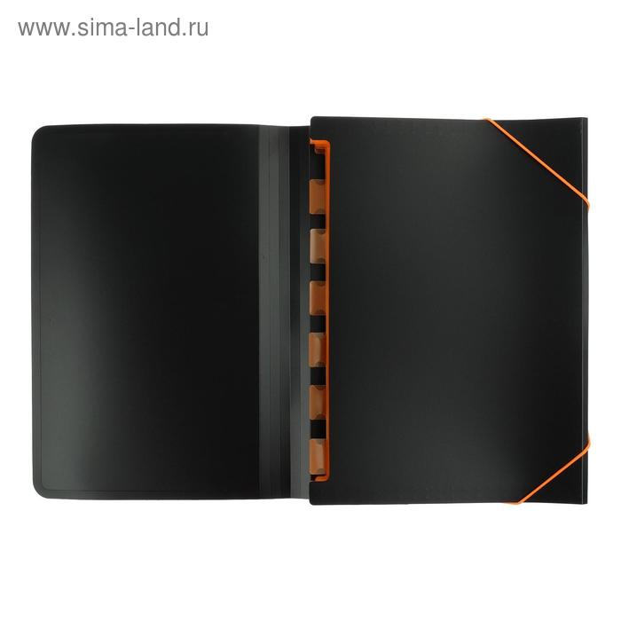 Папка-картотека, А4, 6 отделений, 700 мкм, ErichKrause "Matt Accent", на резинке, тиснение "песок", черная, микс