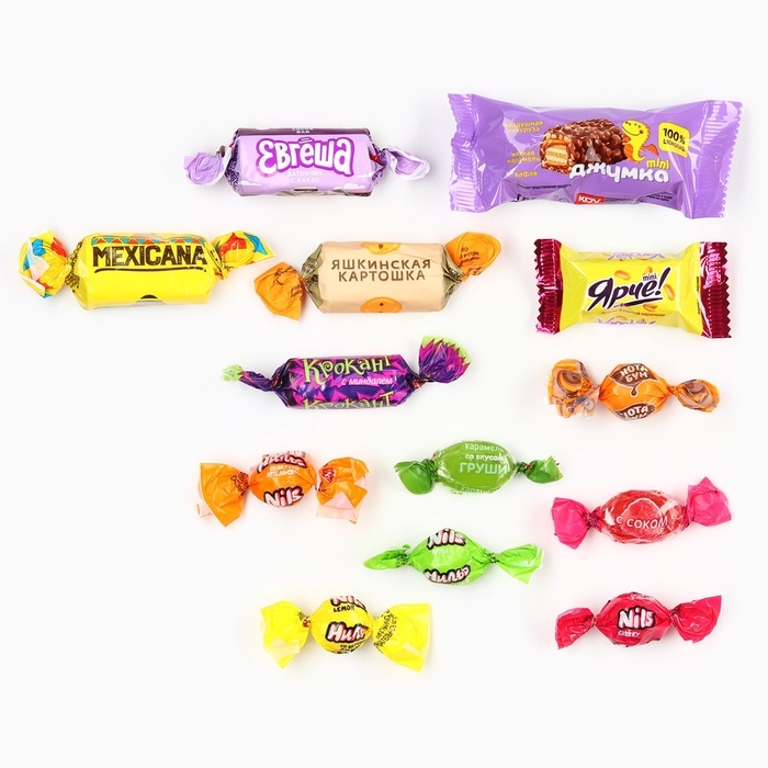 Состав: сахар, патока, масла растительные, какао-порошок алкализованный, агент желирующий – пектины, сыворотка молочная сухая, регуляторы кислотности (лимонная кислота, цитрат натрия), красители (экстракт паприки, куркумин), эмульгатор – лецитин соевый, ароматизаторы. Может содержать незначительное количество яичного белка, глютена, продуктов переработки орехов, арахиса, экстракта ячменно-солодового. Противопоказано при индивидуальной непереносимости белка молока.