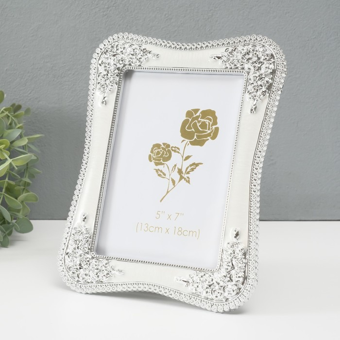Фоторамка пластик под металл 13х18 см "Розовый сад" серебро и перламутр 22х16,7х1,5 см