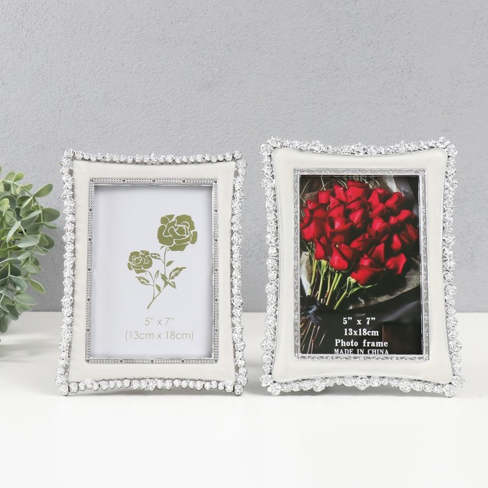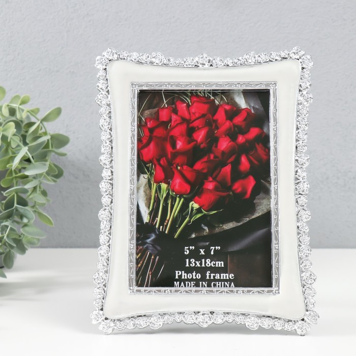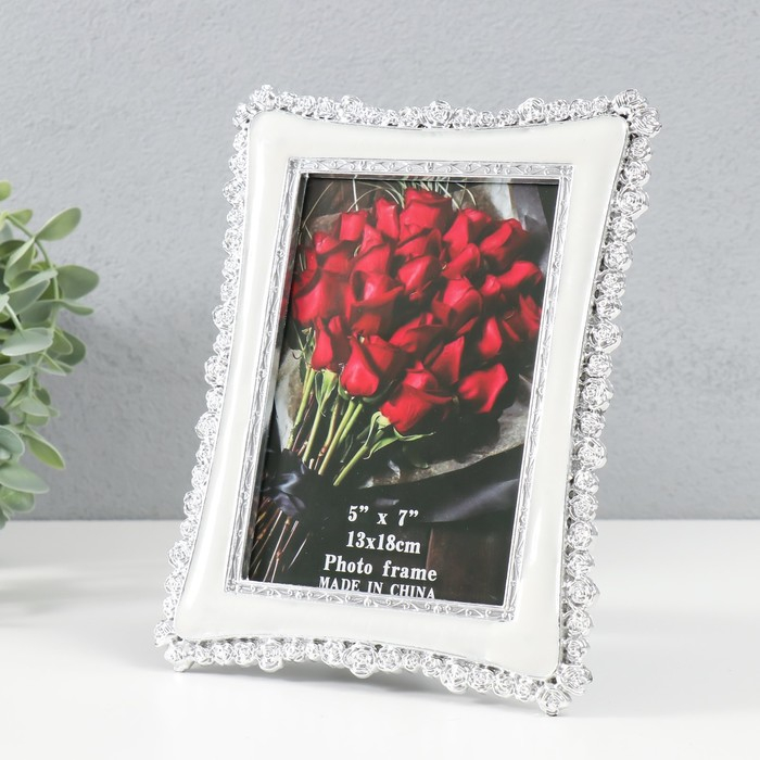 Фоторамка пластик под металл 13х18 см "Розы" серебро и перламутр 22х17,5х1 см