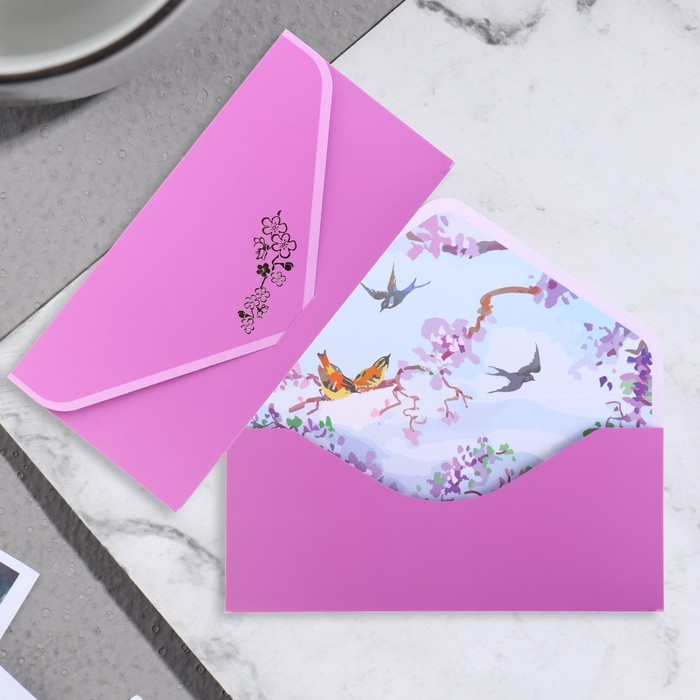 Конверт для денег "Поздравительный" фиолетовый, цветы, 19х9 см