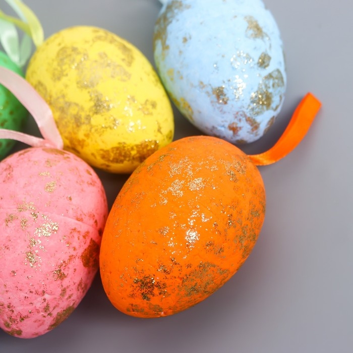 Декор пасхальный подвеска "Яйцо - золотистые пятнышки" набор 6 шт разноцветные 7х5х5 см