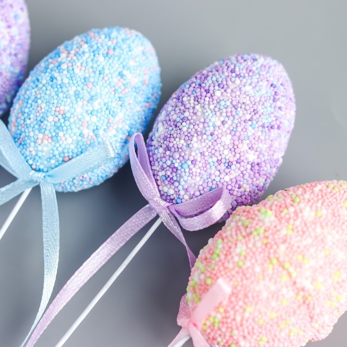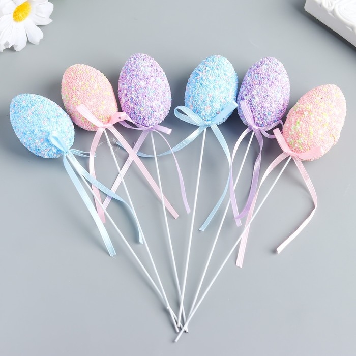 Декор пасхальный на палочке "Яйцо - бисер" набор 6 шт разноцветные 5х3х3 см