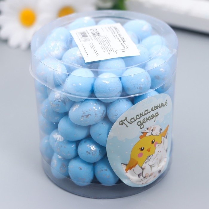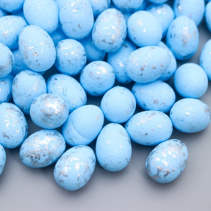 Декор пасхальный "Яйцо - серебристая крапинка" набор 100 шт голубой 1,5х1,8 см, 8х8х8 см