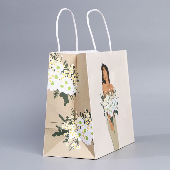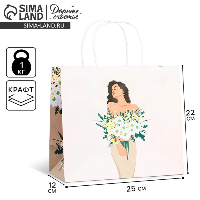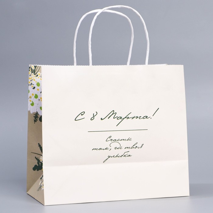 Пакет подарочный крафтовый, упаковка, «Счастье в улыбке», 22 х 25 х 12 см