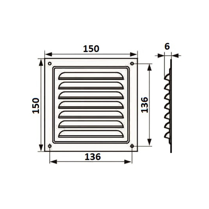 Решетка вентиляционная "КосмоВент" РМ1515КР, 150 х 150 мм, с сеткой, металл, коричневая
