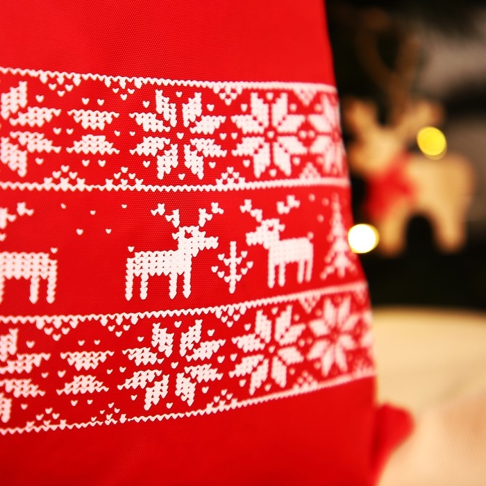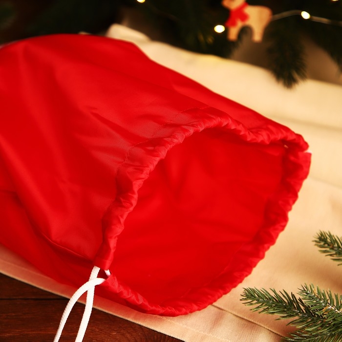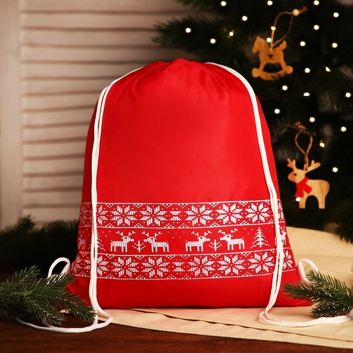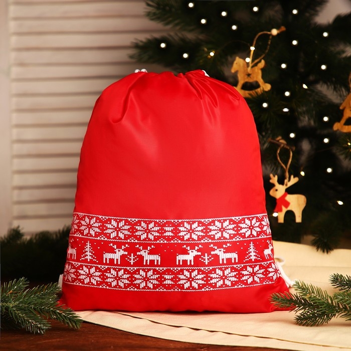 Новый год 2025. Новогодний мешок для подарков на шнурке "Олени", цвет красный