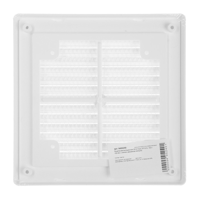 Решетка вентиляционная ZEIN Люкс ЛР1515, 150 x 150 мм, с сеткой, разъемная