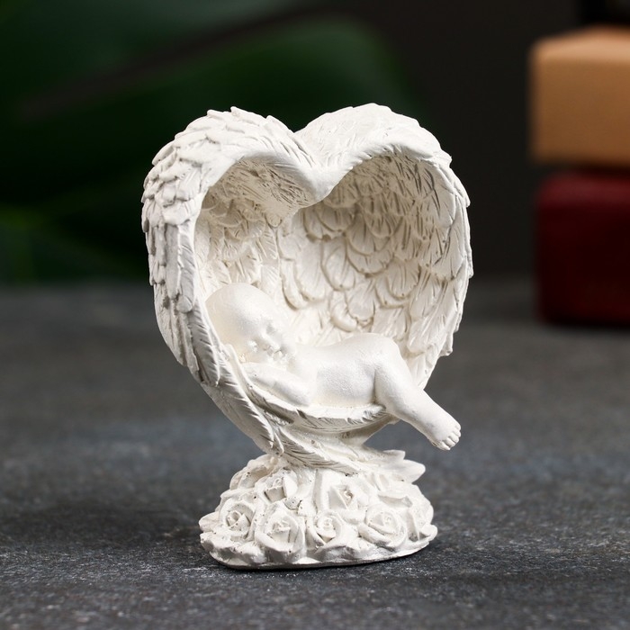 Фигура "Младенец спит в крыльях" перламутр, 8х5х5см
