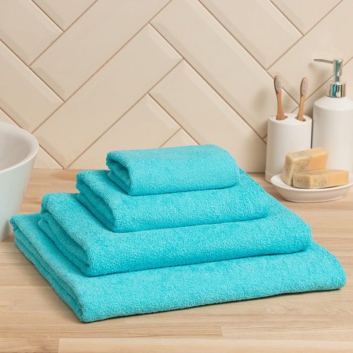 Полотенце махровое Экономь и Я 30*60 см, цв. голубой, 100% хлопок, 350 гр/м2