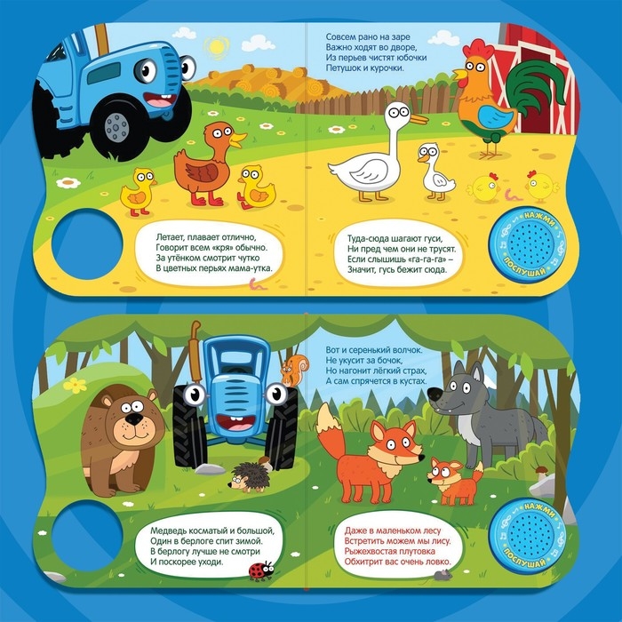Книжка с музыкальным чипом «Животные леса», Синий трактор