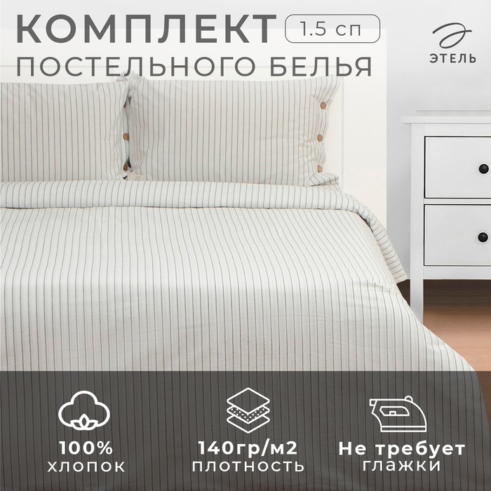 Постельное бельё Этель 1.5 сп White stripes 155х210 см,160х240 см,50х70-2шт, 100% жатый хлопок, 140 гр/м2