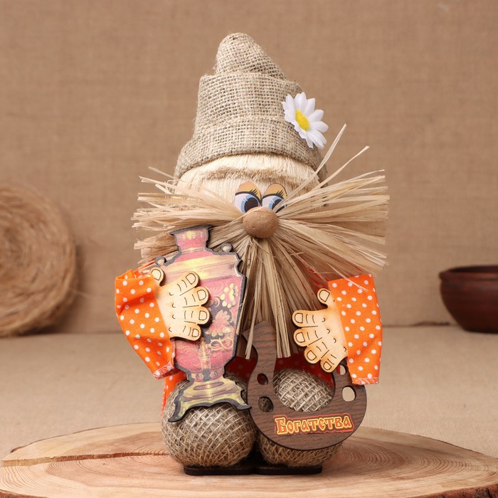Оберег-домовой "Дед с самоваром и подковой", микс 27х18х18 см