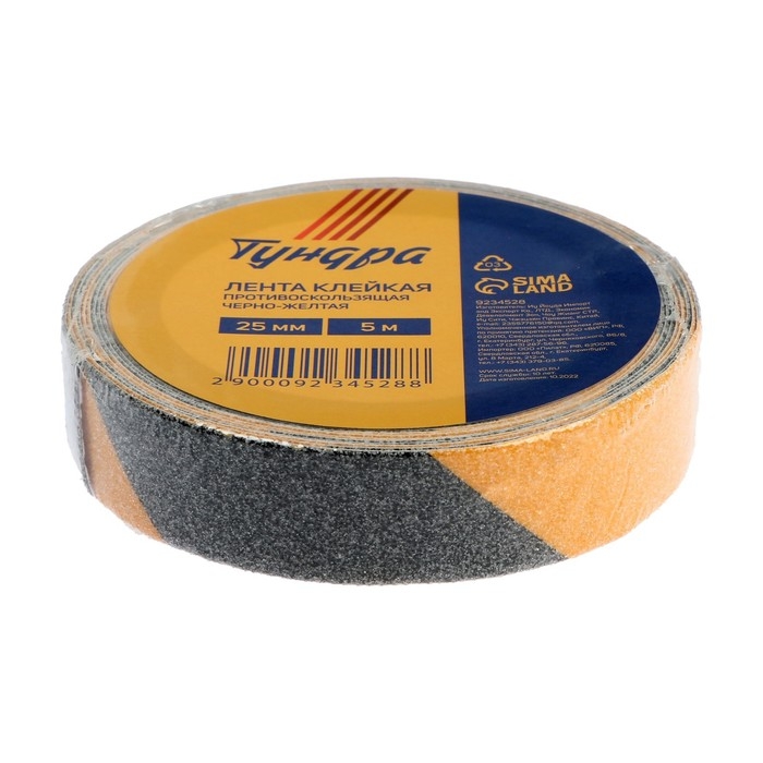 Лента клейкая ТУНДРА, противоскользящая, черно-желтая, 25 мм х 5 м
