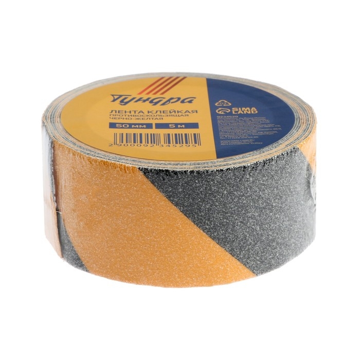 Лента клейкая ТУНДРА, противоскользящая, черно-желтая, 50 мм х 5 м