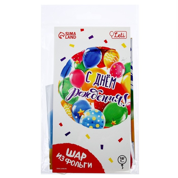 Воздушный шар фольгированный 18" «С Днем рождения, шары», с подложкой