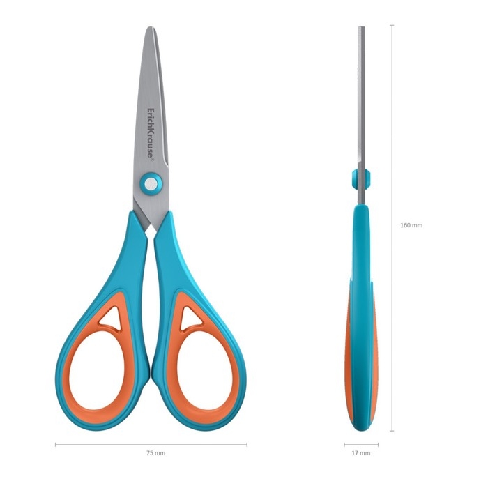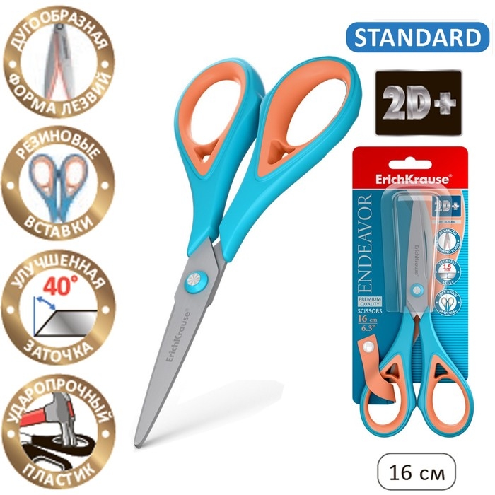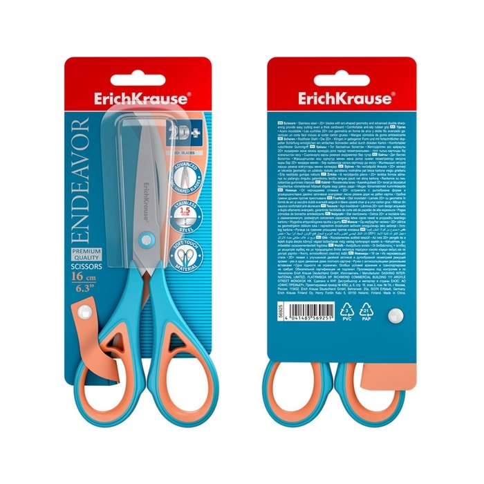 Ножницы ErichKrause Endeavor, 16 см, лезвия из нержавеющей стали, антискользящие резиновые вставки, ударопрочный пластик, блистер, МИКС