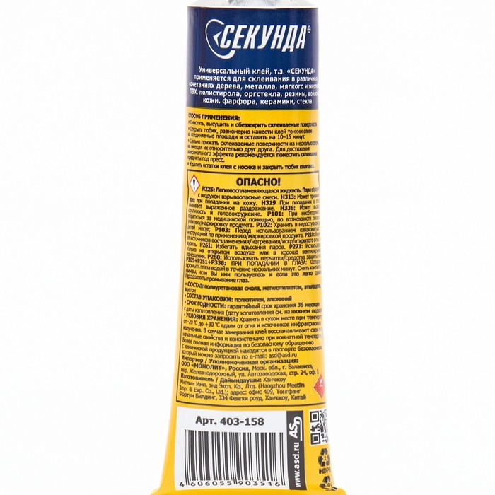 Средство предназначено для склеивания: всех видов пластиков, полистирола, оргстекла, фарфора, керамики, стекла, дерева, металла, резины, кожи, пробки, ткани, поролона, бумаги, картона.