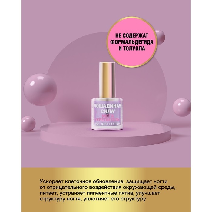 Мега укрепитель для ногтей Лошадиная сила с алмазной крошкой, кальцием, витаминами А и В5, 10 мл