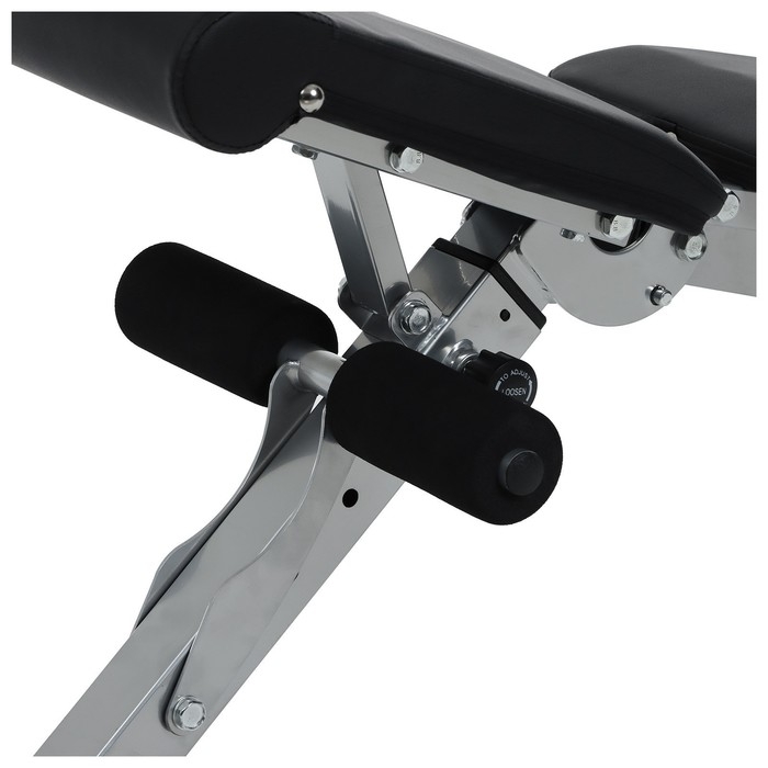 - Валики в мягкой обивке для фиксации ног складываются и не мешают при выполнении упражнений.