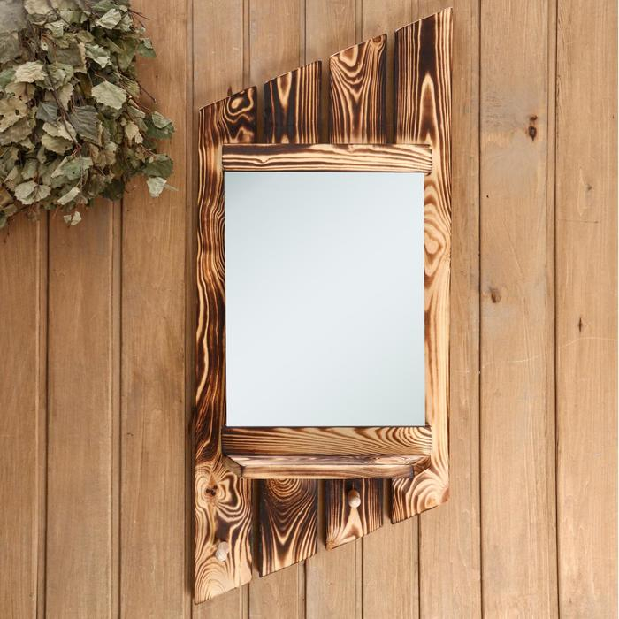 Зеркало резное "Квадрат" с полкой, обожжённое, 53×53×15 см