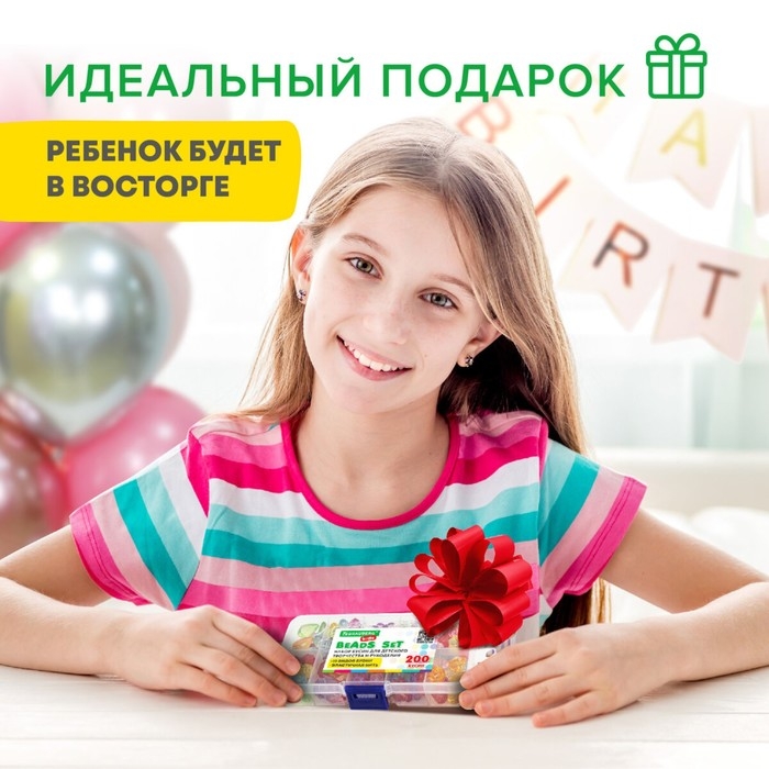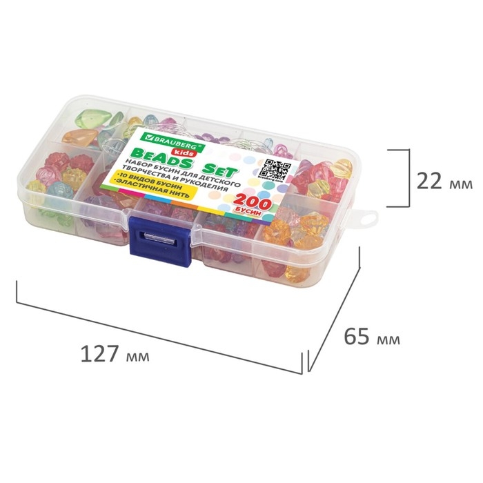 Набор BEADS SET для творчества, рукоделия и создания украшений, 200 бусин, 10 видов, прозрач