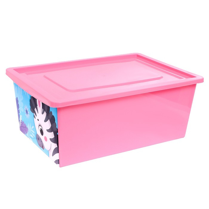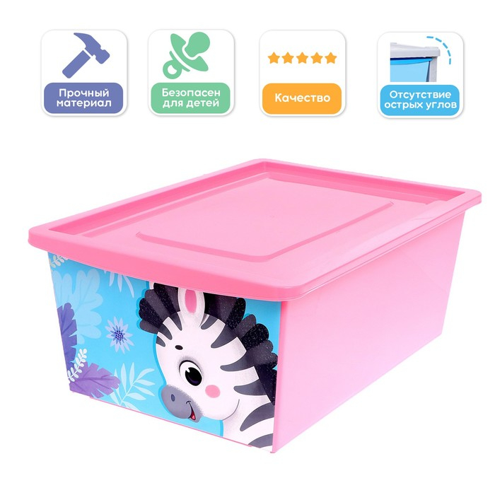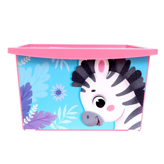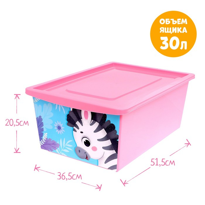 Ящик для игрушек с крышкой, «Весёлый зоопарк», объем 30 л, цвет розовый