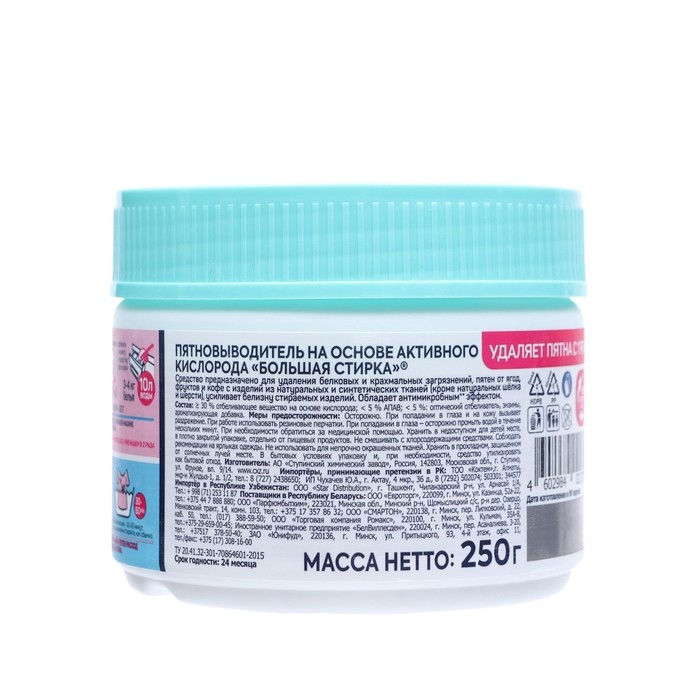 Пятновыводитель на основе активного кислорода БОЛЬШАЯ СТИРКА , 250 г